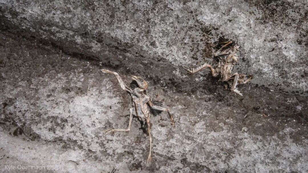 | We discovered the corpses of at least 20 little birds at the top of the frozen lake. Even locals who regularly climbed here had never observed this before. Was it related to climate change? It's not clear, but the summer of 2018 was abnormally hot. |